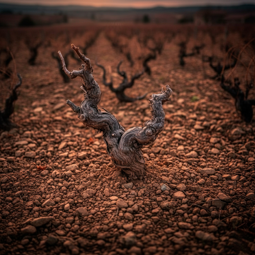 Sus suelos arcillo-calcáreos, cubiertos de grava, imponen condiciones exigentes a la vid. Para sobrevivir, las raíces deben profundizar hasta ocho metros en busca de agua y nutrientes. Esta lucha constante con la tierra no debilita a la planta: la fortalece. El resultado son uvas concentradas, intensas y llenas de carácter, capaces de expresar con fidelidad el entorno del que proceden.